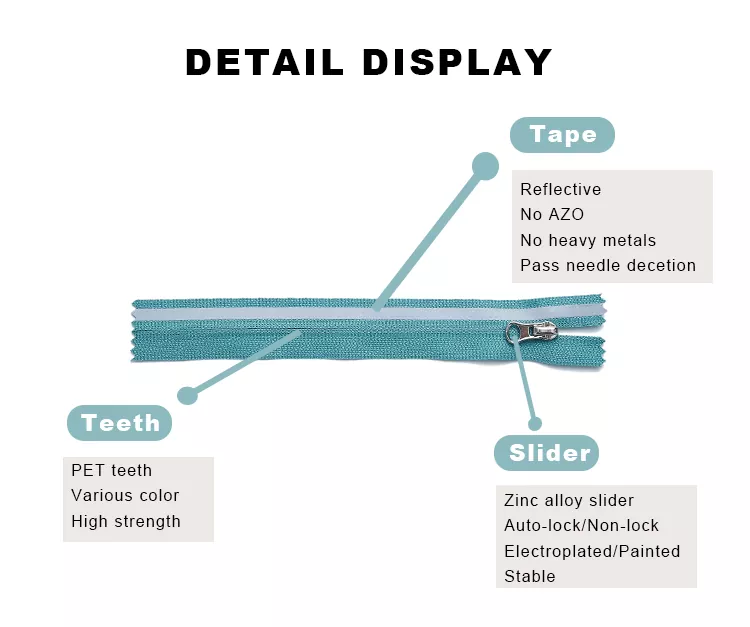 TRC ผู้ผลิตในจีนที่เชี่ยวชาญด้านซิป ผสมผสานเทคโนโลยีการทอและการเคลือบขั้นสูงเพื่อผลิตซิปไนลอนพร้อมแถบสะท้อนแสง ส่งผลให้มีการสะท้อนแสงสูงและความทนทานเป็นพิเศษ ฟันไนลอนของซิปสะท้อนแสงเหล่านี้ช่วยให้การทำงานราบรื่นและมีความต้านทานแรงดึงสูง รับประกันประสิทธิภาพที่เชื่อถือได้แม้จะใช้งานบ่อยครั้ง