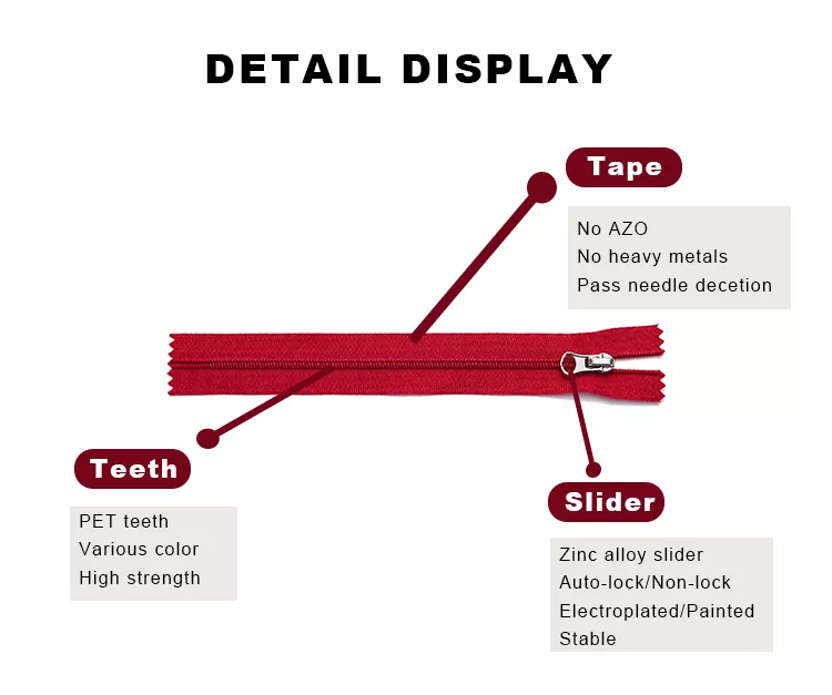 ซิปไนลอนมาตรฐาน TRC ผลิตขึ้นอย่างพิถีพิถันจากโพลีเอสเตอร์คุณภาพสูงและฟันไนลอนที่มีความแข็งแรงสูง การออกแบบให้มีน้ำหนักเบาแต่แข็งแกร่งช่วยให้เปิดและปิดได้อย่างราบรื่น รวมถึงมีความทนทานเป็นเลิศ ในบรรดาซิปที่ใช้กันอย่างแพร่หลาย ผลิตภัณฑ์นี้ให้ความทนทานเป็นพิเศษและให้ความรู้สึกเรียบเนียน ทำให้เหมาะสำหรับเสื้อผ้า กระเป๋าเดินทาง ผ้าปูที่นอน และอุปกรณ์กลางแจ้ง