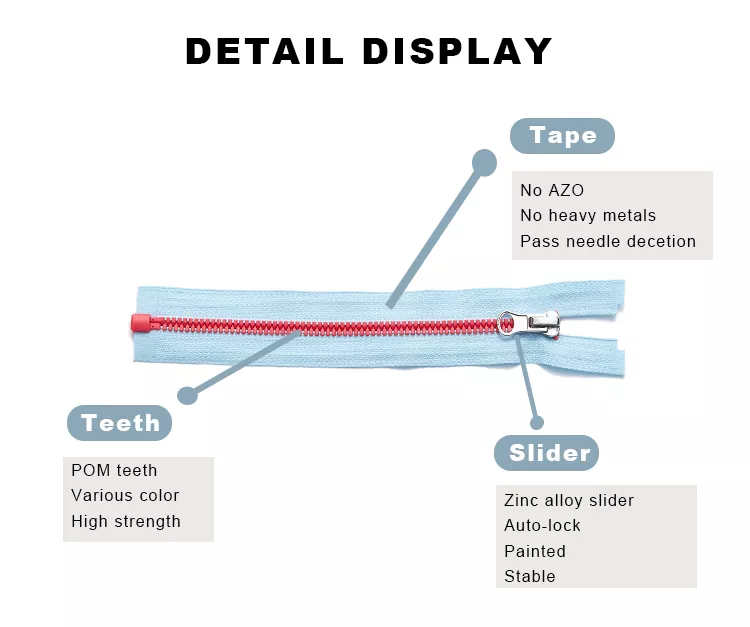 ซิปพลาสติกมาตรฐาน TRC ผลิตจาก POM ระดับพรีเมี่ยมหรือพลาสติกอื่นๆ ที่ทนทานและทนทาน ฉีดขึ้นรูปอย่างแม่นยำเพื่อให้มั่นใจว่าการทำงานของซิปจะราบรื่น ง่ายดาย และทนทานต่อการเสียดสีเป็นพิเศษ ตัวยึดแต่ละตัวมีเทปโพลีเอสเตอร์ที่ทนทาน รับประกันการทำงานที่เชื่อถือได้แม้จะใช้งานบ่อยครั้ง ซิปเหล่านี้มีจำหน่ายในสีเฉพาะต่างๆ แสดงความคงทนของสีที่โดดเด่น โดยคงเฉดสีที่สดใสแม้หลังจากการซักซ้ำหลายครั้งหรือสัมผัสกับแสงและความชื้นเป็นเวลานาน